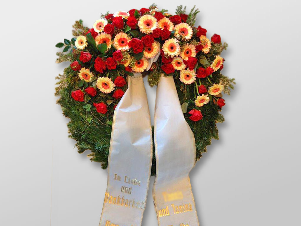 Stiller Gruß oder mit gedruckter Schleife ,wir beraten Sie zu Blumenauswahl und Schleifentexten