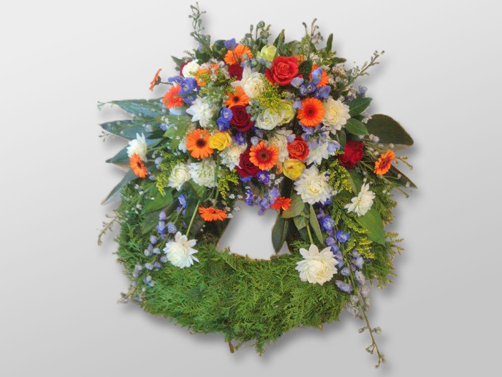 Trauerbinderei -Kranz oder Gesteck aus Blumenschmuck